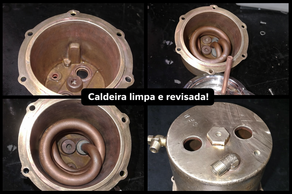 Amigos cafeinados, chegou a hora de me despedir desta pequena guerreira que me acompanhou por 5 belos anos, só me dando alegrias. A máquina dispensa apresentações para aqueles que conhecem, mas para quem ainda não conhece vai uma breve descrição: - Caldeira em latão capacidade de 300ml excelente estabilidade térmica bem maior que da Gaggia Classic, é equivalente a Silvia para quem conhece, fiz a descalcificação e limpeza completa da caldeira, troca da resistência e troca dos termostatos direto com a Fiamma, aqui em São Paulo, está em excelente estado devido ao cuidado que eles tiveram com a máquina durante a manutenção. Quem conhece a máquina sabe que é um tanque de guerra com mais de trinta anos, é muito difícil encontrar a venda uma máquina com esta qualidade no estado que estou vendendo. - 3 Portafiltros profissionais, todos comprados direto com a Fiamma: single e double spot + um naked todos em aço inox e cabos de excelente qualidade igual de máquinas profissionais, não tem nada do Aliexpress, é tudo original comprado direto com o fabricante. - Acompanha 2 filtros: um single original da Fiamma e um double de precisão 3hBomber DEX + o puckscreen. - Vareta de vapor que troquei pessoalmente, substitui a original que apenas girava para os lados e tinha um perfil mais curto por uma vareta profissional longa com articulação 360º e ponteira com quatro furos, envio a original caso o comprador não se adapte é possível reverter. - Válvula OPV Fluid-O-Tech em latão com ajuste via parafuso, comprada diretamente com a Fiamma, fiz a instalação e ajuste, é possível variar entre 6 e 15 BAR pelo parafuso da válvula, deixei próxima de 9BAR. - Quando comprei a máquina ainda troquei a bomba Ulka por uma nova EX5 com cano de saída em latão igual os modelos que vem nas prosumers que usam bomba vibratória, a Minibar tem um sistema onde a bomba é montada sobre uma estrutura em borracha que torna o acionamento bem mais silencioso que a maioria das máquinas com bomba vibratória, isso fica bem destacado principalmente durante uma extração, no vídeo dá pra perceber a diferença quando aproxima a câmera o som da bomba aumenta, mas quando afasta pra distância que normalmente quem está extraindo fica, é o barulho que faz. - Também troquei as vedações, o chuveiro, e a proteção contra respingos no escoamento da válvula solenoide, é uma tampa que vai na bandeja de escoamento da máquina (outro item que máquinas usadas costumam vir faltando). Resumindo, é uma máquina muito confiável e parruda (por isso continua funcionando como nova mesmo depois de 30 anos), toda em aço inox, a única coisa de plástico que tem são os botões e a válvula do vapor, como se trata de uma máquina antiga muita gente vende por um preço ligeiramente menor para o comprador arcar com as manutenções que costumam ser bem caras, no meu caso fiz todas as manutenções direto com o fabricante para garantir a qualidade, e o comprador já vai levar a máquina pronta pra uso, por isso estou pedindo um pouco mais que as versões com manutenções por fazer. Abaixo um vídeo de extração nela que fiz hoje pela manhã: Segue o anúncio: https://sp.olx.com.br/sao-paulo-e-regiao/eletro/eletroportateis-para-cozinha-e-limpeza/cafeteira-espresso-fiamma-minibar-1488758429? Abaixo, uma foto mostrando o estado da caldeira após a limpeza feita na Fiamma.1 point