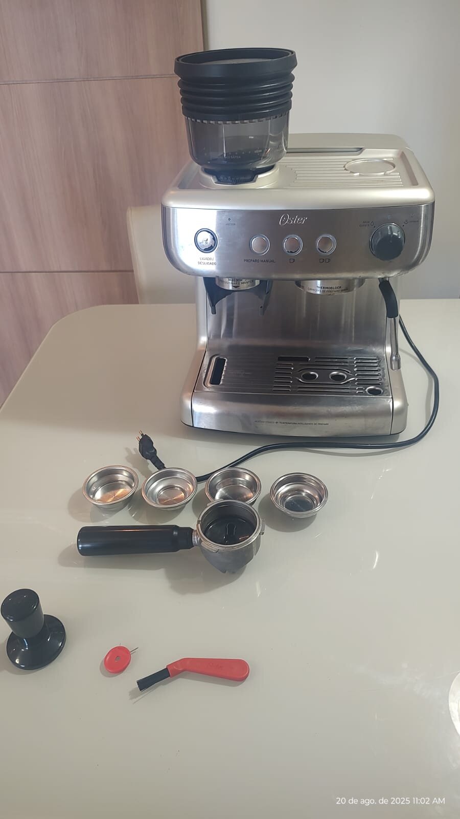 Depois de 1 ano de ótimos cafés estou vendendo minha OPB. Tem pouco mais de 1 ano de uso, limpa e descalcificada regularmente. Dos acessórios originais, não tenho mais a pitcher, mas para compensar estou enviando com o Hopper do moedor que minimiza a retenção. Nunca foi utilizado filtro ou porta-filtro diferente do original e nunca teve vazamento. Caso seja um novato nos espressos, possuo alguns outros acessórios que podem ajudar (funil, tamper, ...) podemos incluir na negociação. https://ce.olx.com.br/fortaleza-e-regiao/para-a-sua-casa/utensilios-para-cozinha/cafeteira-oster-xpert-perfect-brew-220v-1430188151? R$1.500,00. Manda a proposta lá no OLX. Caso tenha alguma dúvida pode me contatar no wpp. https://wa.me/5585987153635 -