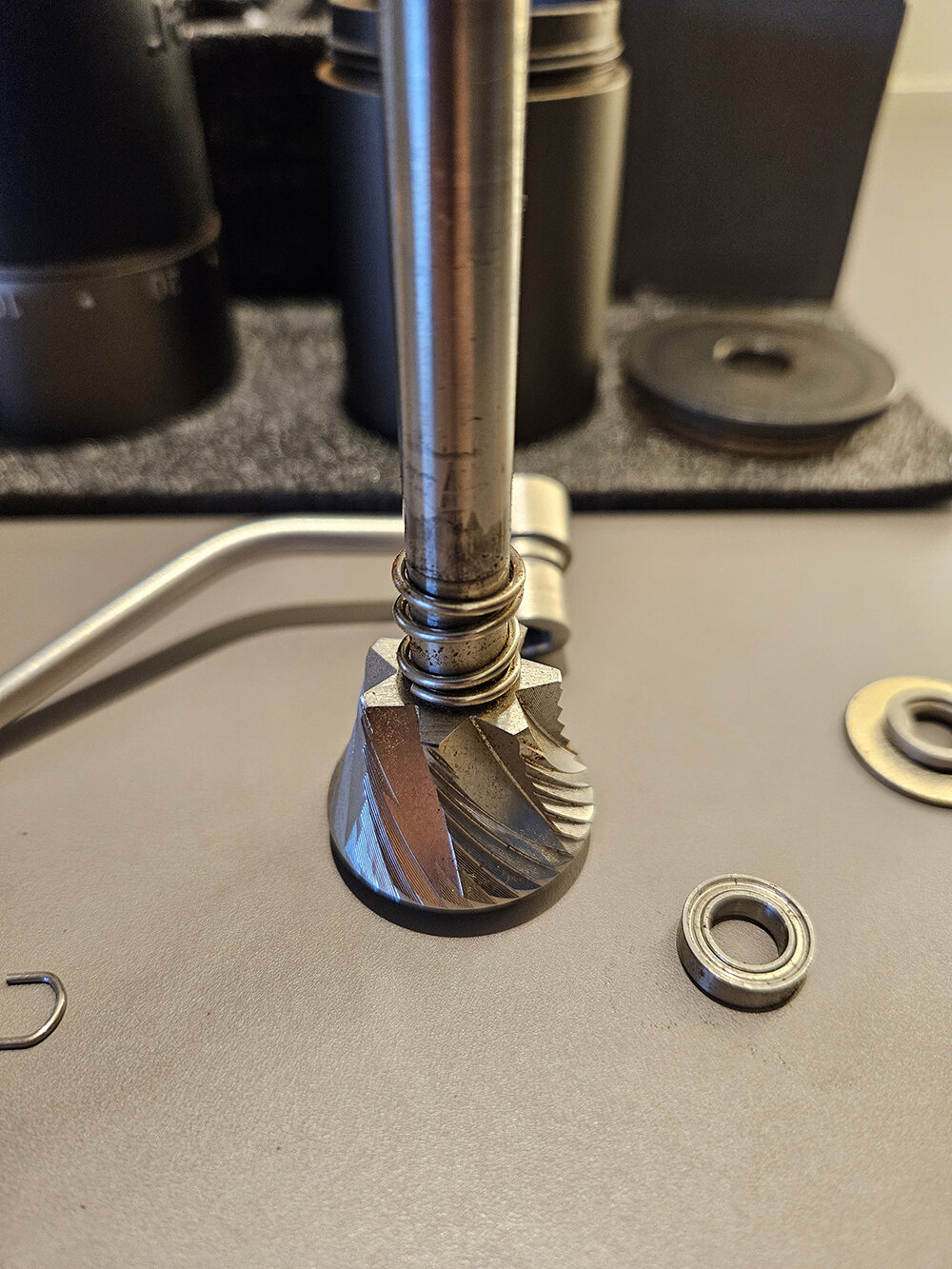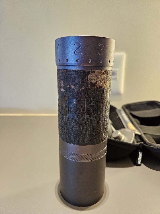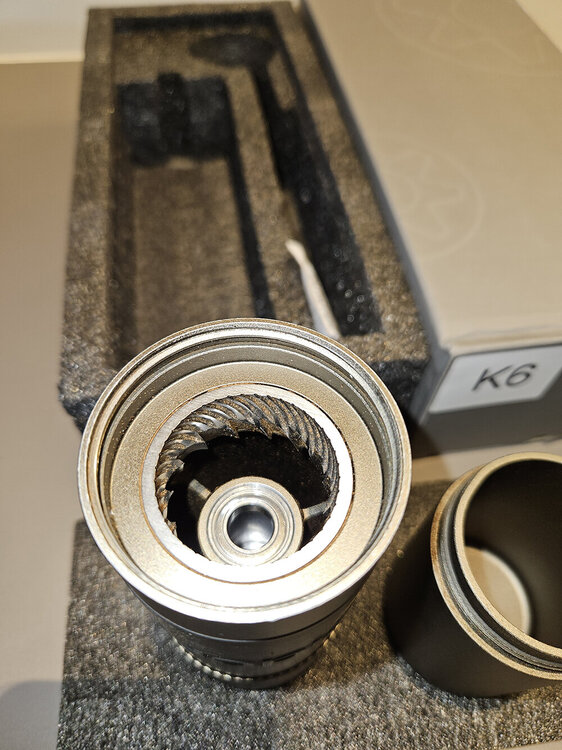 2º dono, utilizado por 1 ano para moer cafés para espresso 1-2 vezes por dia. Com danos estéticos na parte externa que não comprometem a moagem. Mós em ótimo estado. Na bolsa original com todos os acessórios.