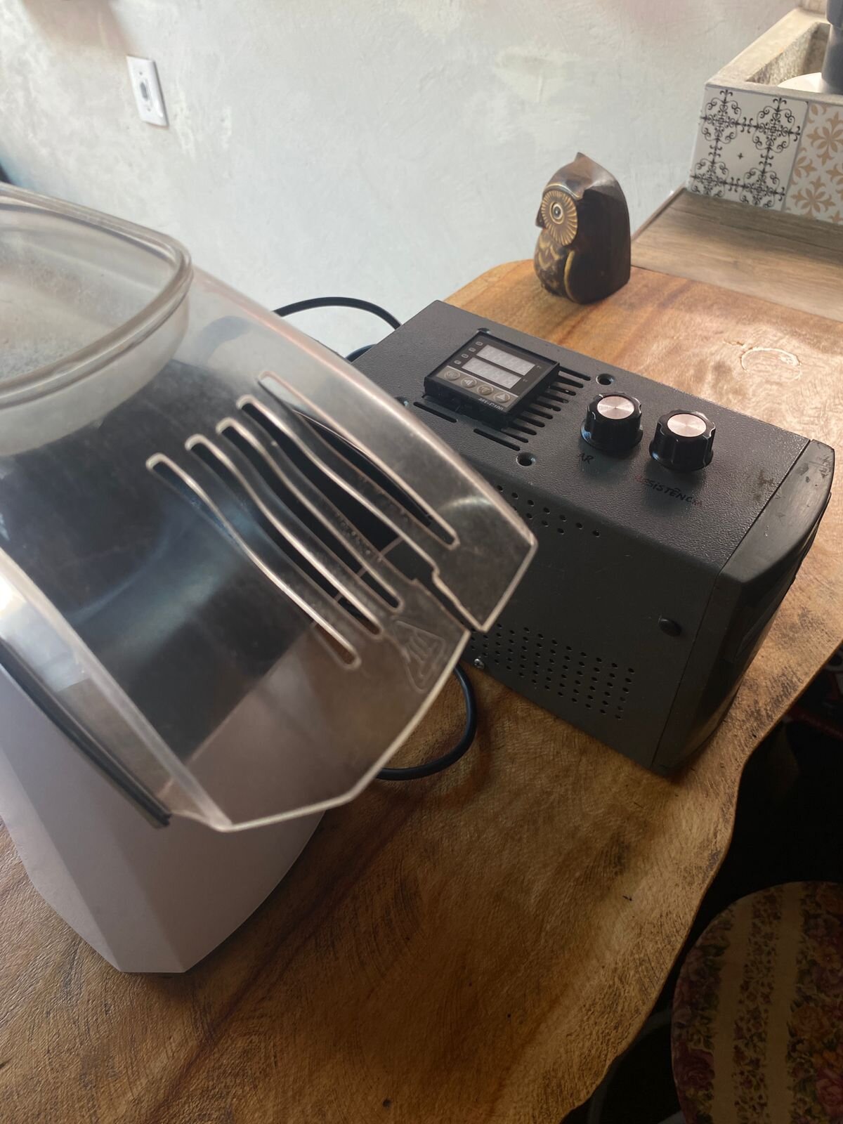 Estou vendendo uma pipoqueira Britânia modificada para torra de café, montada com foco em maior controle do processo. Ela está com: controle de temperatura via PID + SSR sensor PT100 controle de velocidade do ar controle de resistência/potência transformador funcionamento em 110V É uma opção interessante para quem quer brincar com perfis, aprender mais sobre desenvolvimento e ter uma base mais completa do que a pipoqueira original. Componentes/custos que foram usados na montagem: Pipoqueira: R$ 150 PID com SSR: R$ 160 Dimer: R$ 50 PT100: R$ 80 Transformador: R$ 300 Total em peças: R$ 740 Considerando montagem, adaptação e materiais adicionais, meu valor é R$ 850. Também aceito troca por moedor elétrico, dependendo do modelo. 41991073170
