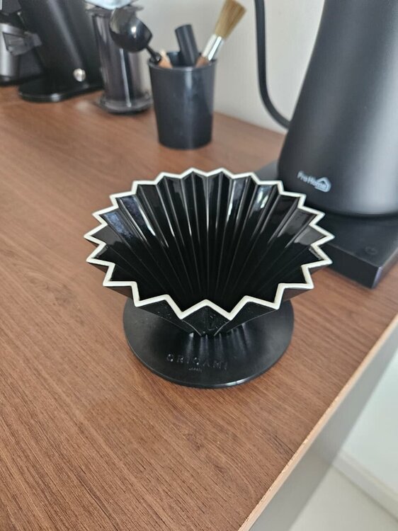 Transforme seu ritual de café com o Origami Dripper, original do Japão, acompanhado da base de apoio. Este método de percolação une beleza e versatilidade, sendo compatível com filtros V60 e Kalita Wave. Seu design inovador permite maior controle na extração e realça os sabores do café especial. Ideal para quem busca qualidade e estilo na rotina, o conjunto está em perfeito estado de conservação, pronto para elevar sua experiência com cafés filtrados. OLX: http://sp.olx.com.br/sao-paulo-e-regiao/para-a-sua-casa/utensilios-para-cozinha/porta-filtro-origami-dripper-japones-base-de-apoio-compativel-com-v60-e-kalita-wave-1440507279 Mercado Livre: https://produto.mercadolivre.com.br/MLB-5746779748-porta-filtro-origami-dripper-japons-base-de-apoio-_JM