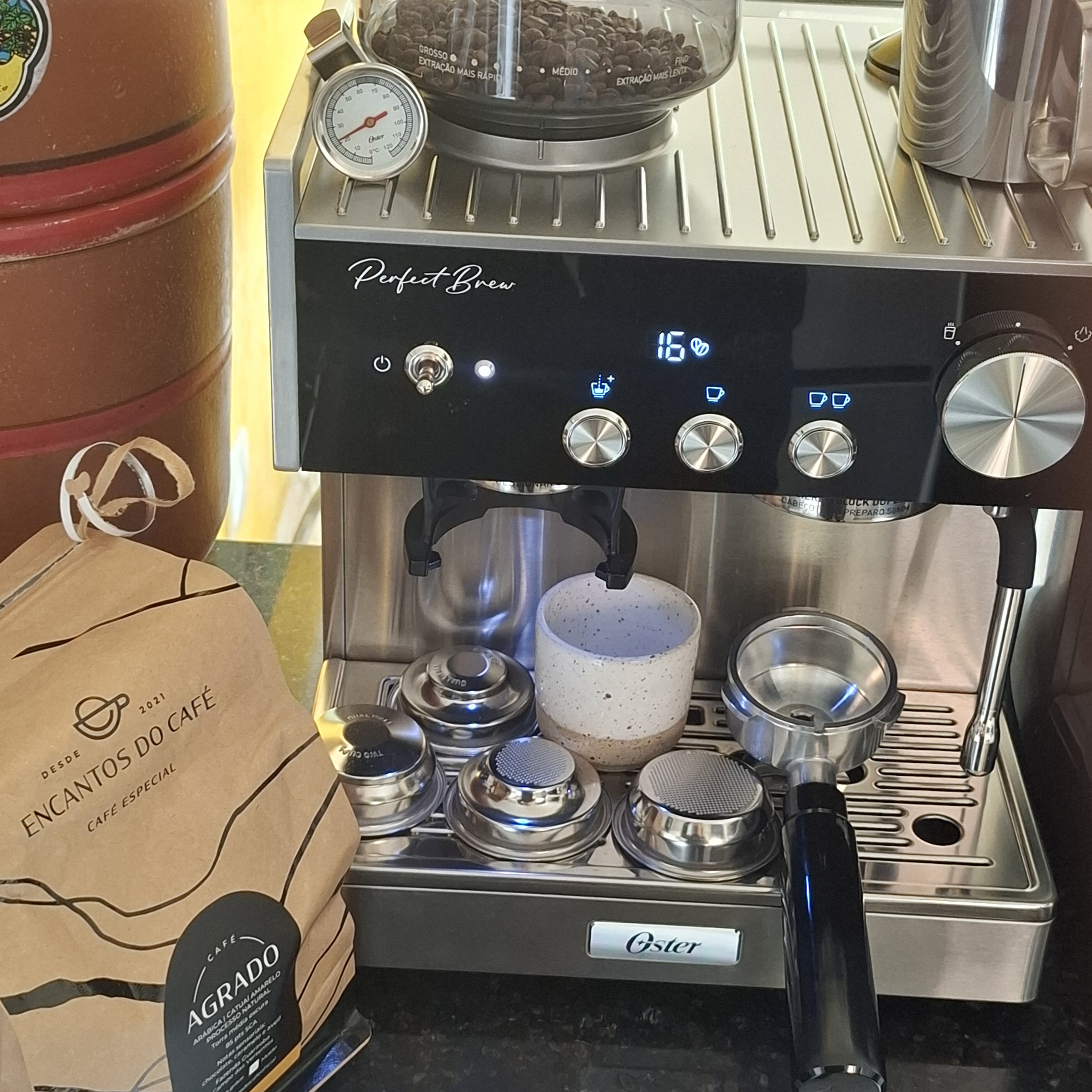 Enfim, eu estava usando o café Mellita em grãos, torra média e tinha chegado num sabor agradável pra mim. Porém, comprei o café Agrado da Encantos por recomendação do Thales e não estou conseguindo acertar o ponto dele, ou fica muito ácido ou muito amargo.