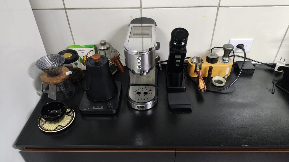 Bruno Maroni Postado 22 Novembro 2025 Denunciar Share Postado 22 Novembro 2025 Em 29/04/2025 at 17:01, alxbrgs disse: Estou usando o Starseeker E55 há alguns dias e, até agora, estou gostando bastante. Esse é meu primeiro moedor elétrico desde que comecei a fazer espresso em casa. Entre 2019 e 2021, usei um Breville, mas apenas para métodos de coado. A construção e o acabamento do E55 me surpreenderam positivamente. São excelentes, robusto e compacto. Ainda assim, confesso que o design não me agrada muito. Acho meio estranho a mistura de linhas retas com curvas e, para mim, não ornam. O bellow realmente não tem um material muito bom, mas, sinceramente, não vejo necessidade de trocá-lo. Ele funciona bem. Com o meu moedor manual, nunca precisei usar RDT (spray de água nos grãos), mas com o E55 faz muita diferença e é super necessário. Tanto pela questão de retenção como limpeza. No meu E55, com ele desligado, as mós fecham completamente no ponto 75. Então, subo até o zero e uso isso como minha referência de partida. Não acho necessário fazer ajustes nas mós para que o marcador zero coincida com o fechamento total, nem recorrer a gambiarras com arruelas. O marcador é só uma referência e, com poucos usos, você encontra a faixa ideal para os seus grãos e a sua máquina. A única modificação que fiz foi colocar um feltro embaixo do copinho e também colei um pedaço de papel contact na base para evitar riscos. Tenho extraído espressos entre os ajustes 40 e 45 com os grãos que estou usando atualmente. Os dois primeiros testes fiz em 30 e 35, e apesar das extrações demorarem mais de 1 minuto, os resultados não foram ruins. Um deles saiu como um ristretto (1:1) bem doce, inclusive, mas era a última dose do pacote. Para referência, no Bravito costumo moer para espresso entre 0v40 e 1v. Minha máquina é uma Philco 15 BAR, PF de 51 mm (mods: OPV em 9 BAR, dimmer, manômetro e PID). Para coados, só testei duas vezes até agora. Foi uma moagem em 100 e outra em 140 (considerando que o marcador vai de 0 a 100, seria uma volta completa a partir do zero e depois mais 40 pontos). Ele não tem "clicks", é realmente stepless. O pó sai bem fofo, sem clumps. Costumo fazer WDT, mas fiz uma extração apenas assentando o pó com umas batidas e depois o tamper, e foi bem consistente. Eu costumo ligar o moedor primeiro e só depois despejar os grãos. No geral, ainda não notei uma grande diferença sensorial entre o Bravito e o E55. Tenho optado pelo elétrico pela praticidade nos últimos dias, mas não fiz testes lado a lado nem provas cegas... não é muito meu estilo. Comprei pelo AliExpress, com envio do estoque no Brasil. Não estava planejando comprar um elétrico agora. Até pensava em pegar um DF54 no futuro, mas acho que essa foi uma boa oportunidade pelo custo-benefício excelente. Paguei R$ 1.050 e ainda deve cair um % de cashback em breve. Pontos negativos eu diria que: - grãos ficam presos na parte inferior da entrada do moedor, especialmente quando uso RDT e por conta da inclinação. Aí preciso desligar o moedor e empurrá-los com o dedo ou algum objeto. - os imãs do bico não são tão fortes, algumas vezes esbarrei sem querer ele caiu facilmente (edit: na verdade, são fortes sim, mas tem que deixar bem encaixado. aqui nunca mais caiu Mas fora isso, estou gostando bastante e é impossível não recomendar ele nessa faixa de mil reais. Segue abaixo algumas fotos e um vídeo da moagem: Na bancada de espresso, entre a minha Philco 15 BAR e o Bravito Moagem direto no PF, usei como apoio um distribuidor de cabeça para baixo Saída sem o "nariz" e usando RDT nos grãos Aqui sem fazer RDT se sem pressionar o bellow Moagem em 1v40, para V60 Vídeo da moagem, clicar aqui Engraçado, uso o mesmo ajuste de 1v40 no bravito e o starsseker bate TB com 1v 40. Vou testar pra ver se sai. Citar Link para o comentário Compartilhar em outros sites More sharing options...